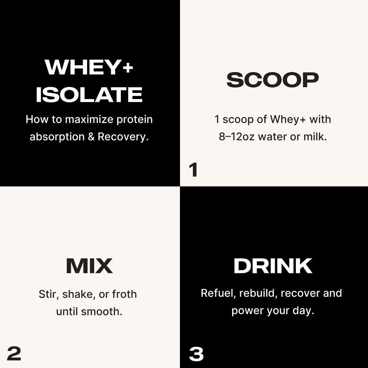 DIRECTIONS: Mix 1 scoop with 8-12 oz of water, milk, or smoothie (use more a less liquid depending on your taste preference) for 30 seconds